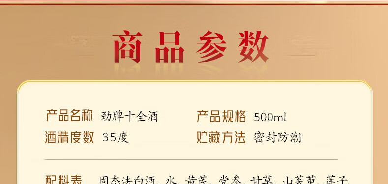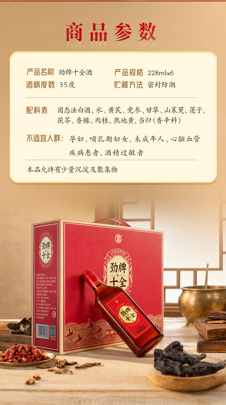 劲牌 中国劲酒 十全酒 35度 500ml*1 瓶 单瓶装