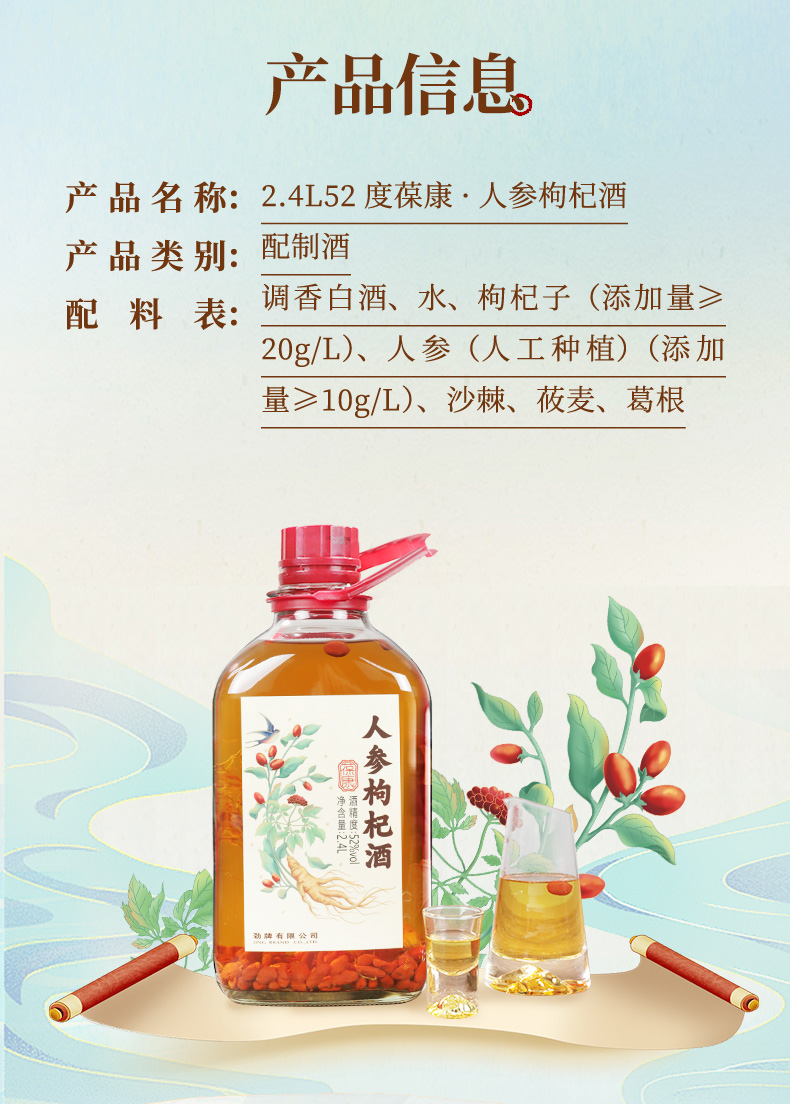 劲牌 中国劲酒 人参枸杞酒 52度 2.4L 单瓶装 养生优选