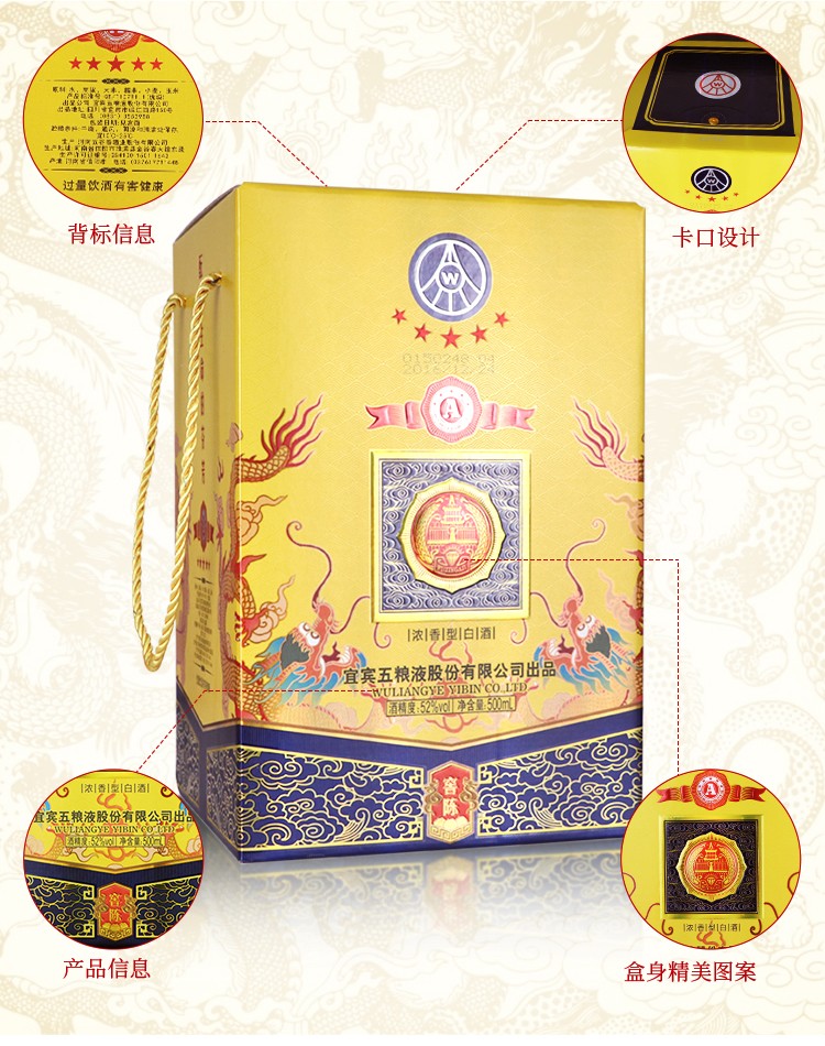 52º五粮液股份出品 A级窖陈 浓香型白酒500ml*6整箱装