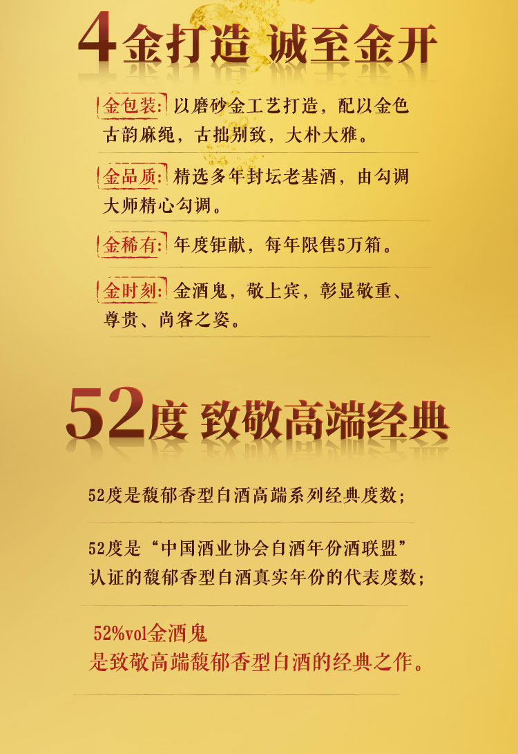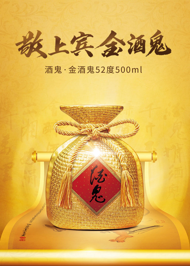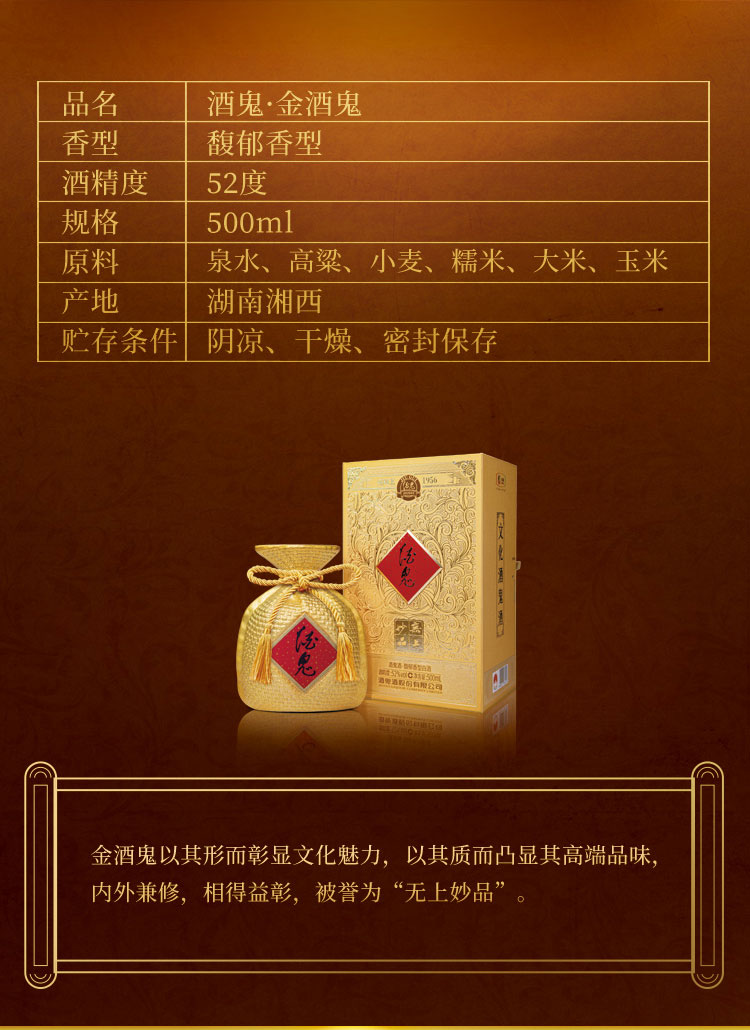 52度金酒鬼馥郁香型白酒500ml单只礼盒装